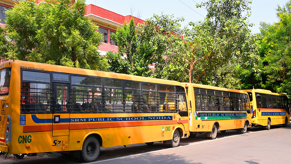 A secure and GPS-tracking enabled fleet of buses for transportation of students and staff, with SMS notifications for parents to be aware of arrival and departure times.